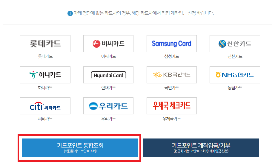 7. 왼쪽 하단 ‘카드포인트 통합조회‘ 클릭