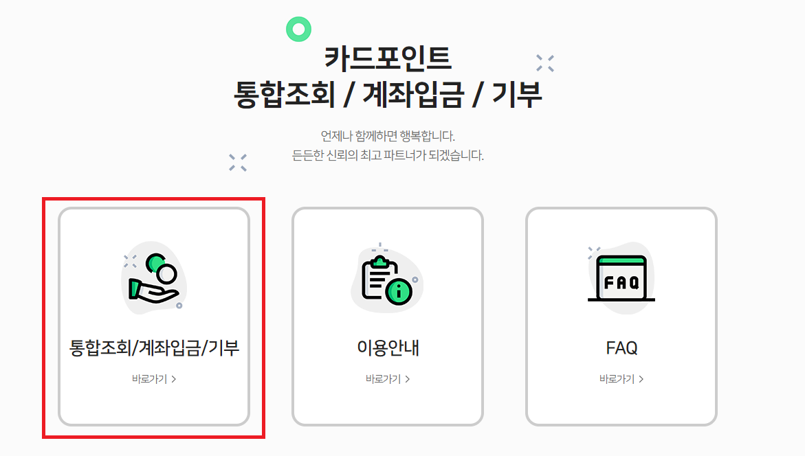 1. 통합조회 결과 화면에서 하단부 ‘포인트 계좌입금/기부하기‘를 클릭합니다.