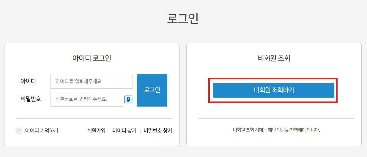 3. 오른쪽 ‘비회원 조회‘를 클릭합니다.